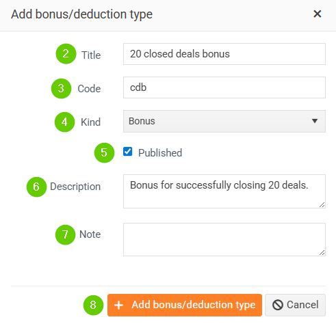 - By default, the Published box is checked . If you do not want the new bonus type to be automatically published after adding it, leave this checkbox empty.