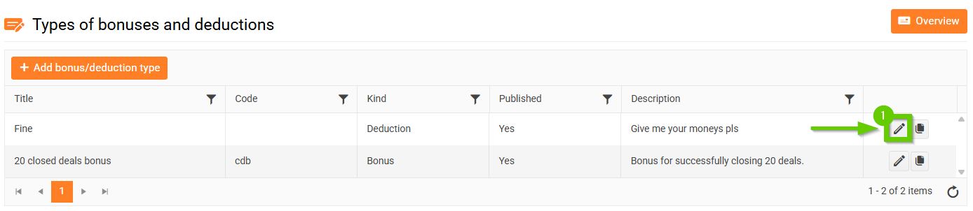 - Click the pencil icon to open the details of the selected bonus/deduction type.