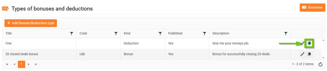 - Select the type of bonus or deduction you want to copy and click the copy icon next to it.
