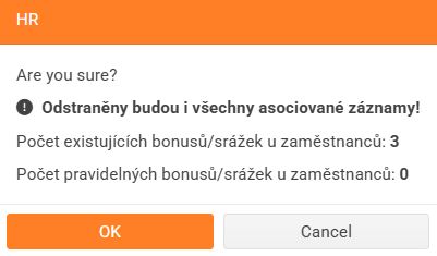 - The system will ask you to confirm deletion. It will also show the number of existing employee bonuses and deductions, and the number of regular employee bonuses and deductions .