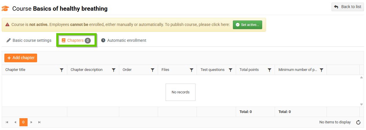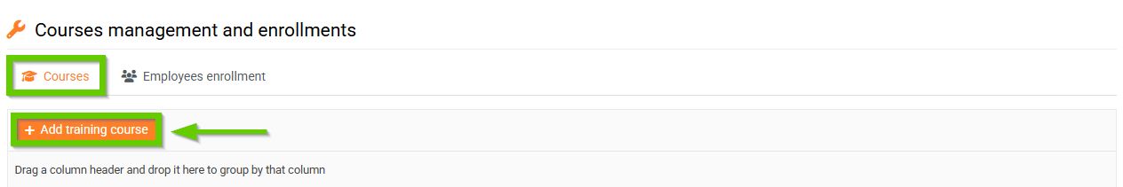- Click the Add training course button.