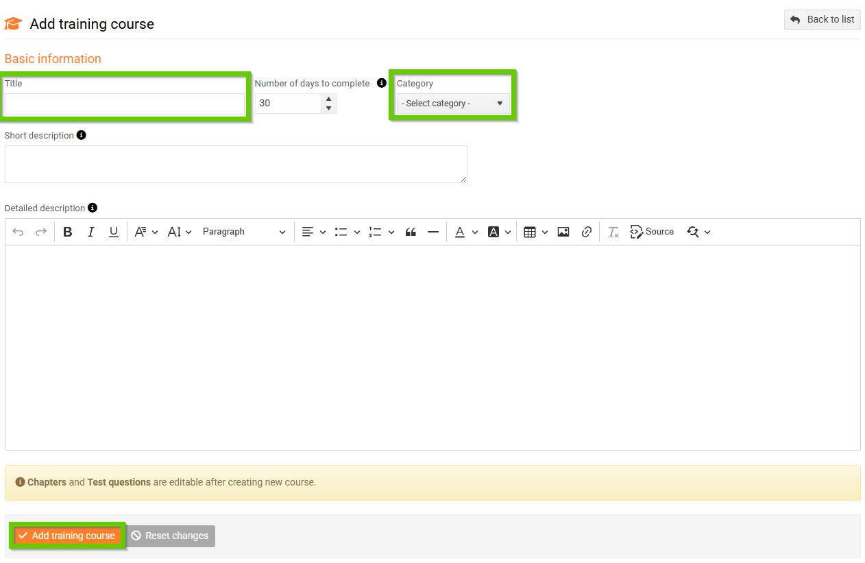 - Save the completed form by clicking the Add training course button.