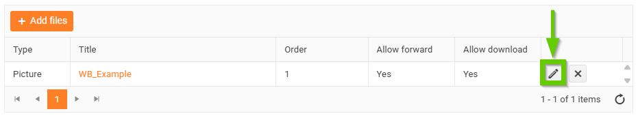 You can make these edits and settings for files by clicking the button with the pencil icon (Edit record).