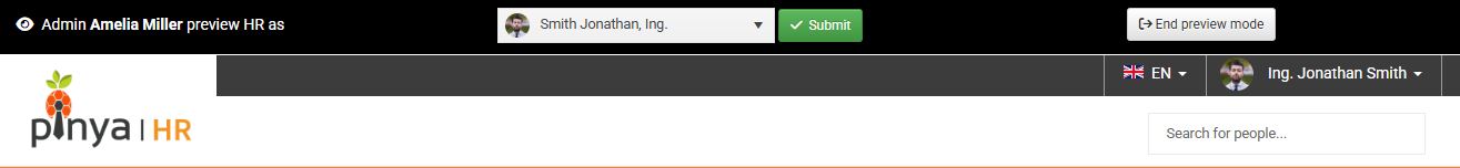 In Pinya HR, you can easily view the system from another employee's perspective.
