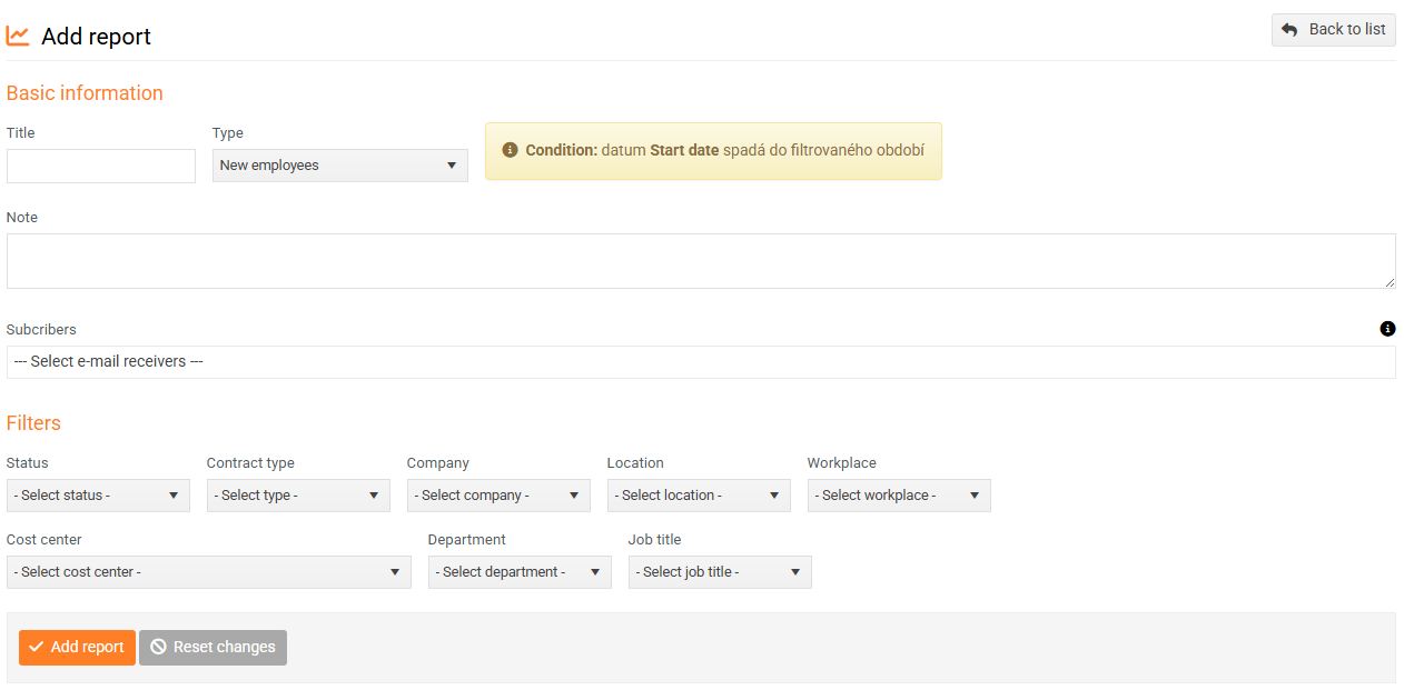 - New employee report (Condition: The start date of new employees must fall within the filtered period.)
