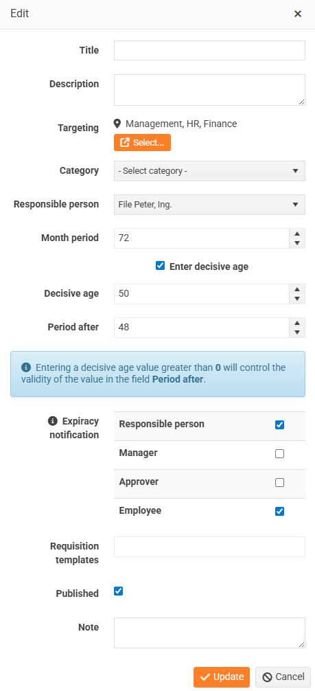The notification always takes into account the latest medical examination record of a specific employee. - select the request templates that should be linked to this type of examination (you can save the templates in advance in the Document Management module as files with the type = Request for medical examination )