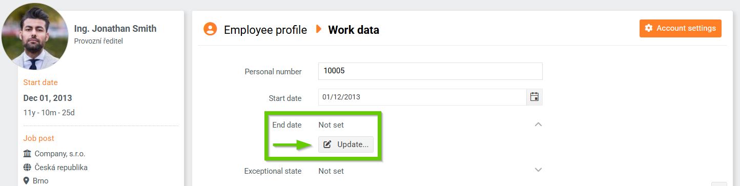 To terminate an employee's employment, go to the Work Details tab in their profile.