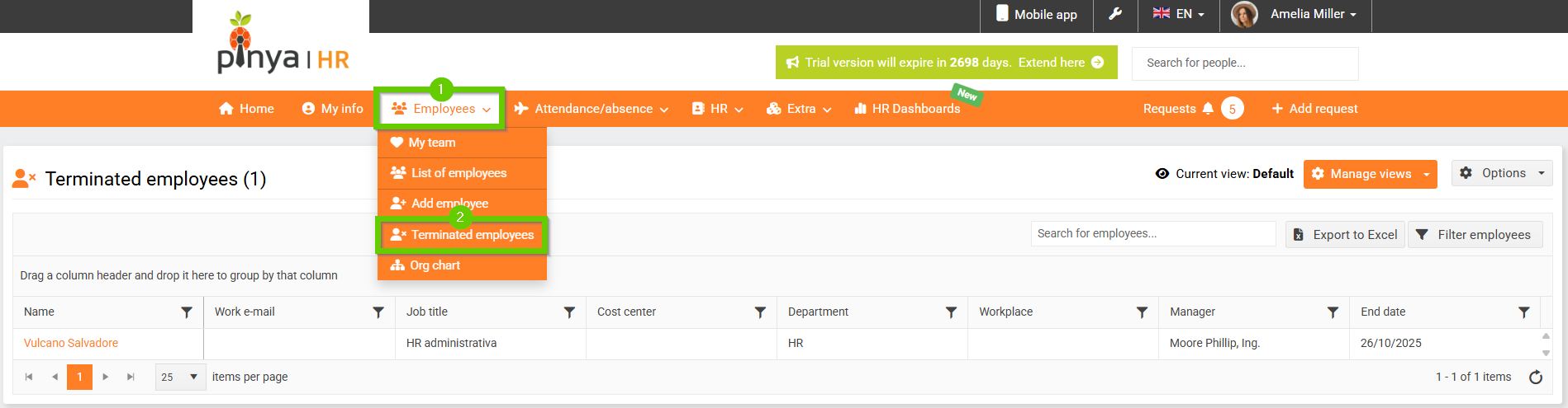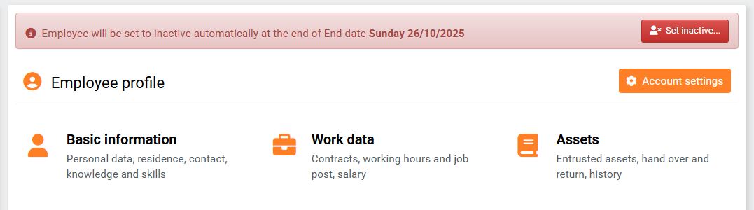 After setting a departure date, the employee will automatically be moved to the inactive employee list at the end of the departure day and will be removed from the organizational structure .
