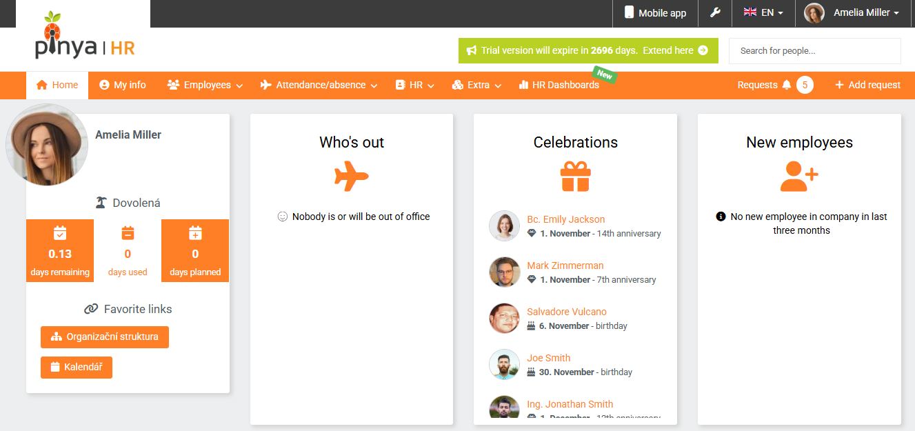 After logging in to PINYA HR, you will be taken to the homepage of your employee account.