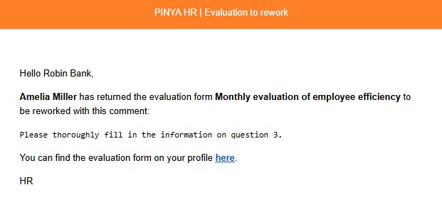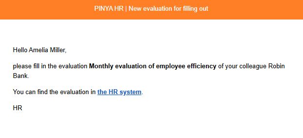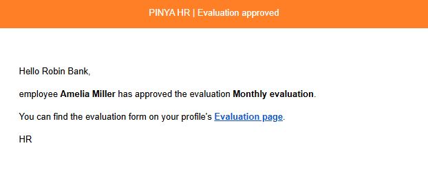 - The employee to whom the evaluation has been added will receive a notification at their email address containing a link that will redirect them to the evaluation page.