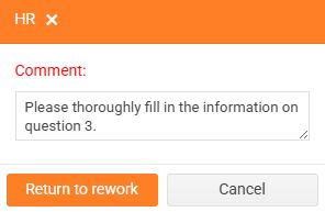 If the manager clicks the Return for Addition button, a window will appear with the option to comment on why the rework is necessary.