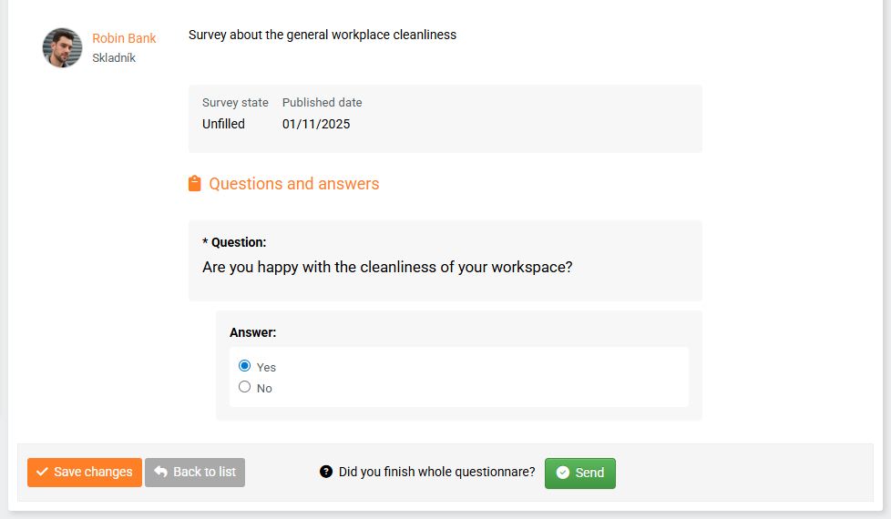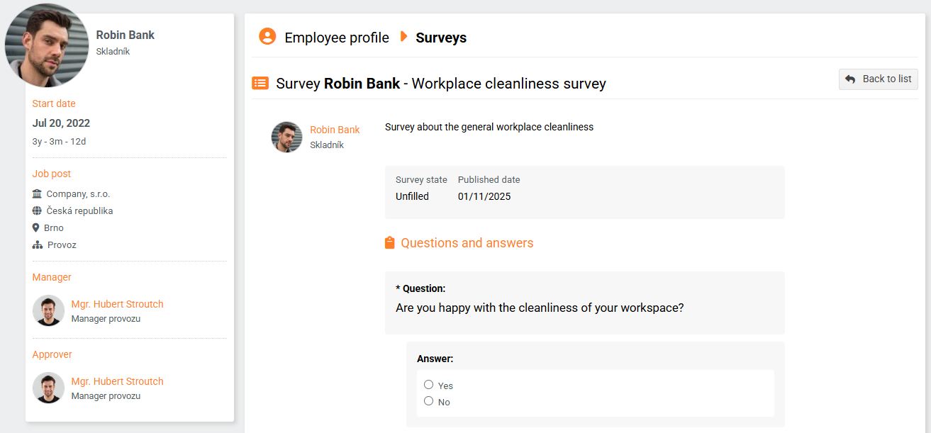 By clicking the request, the employee is taken directly to the survey and can begin answering questions.