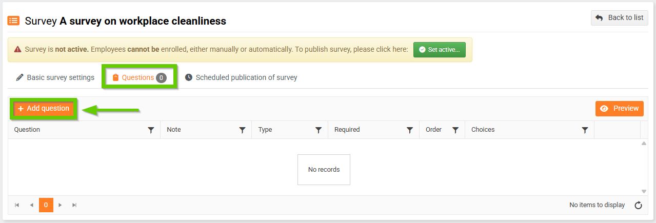 You can also set whether a question is mandatory and define the order in which it appears in the survey.