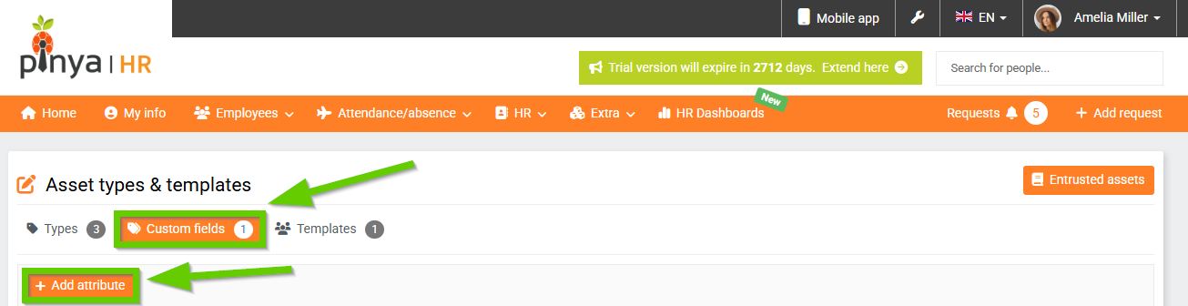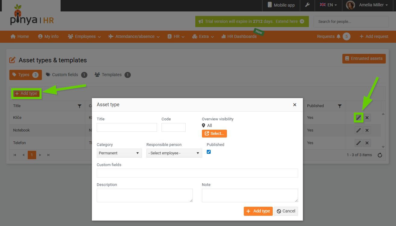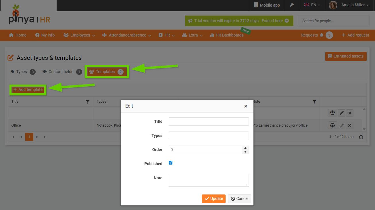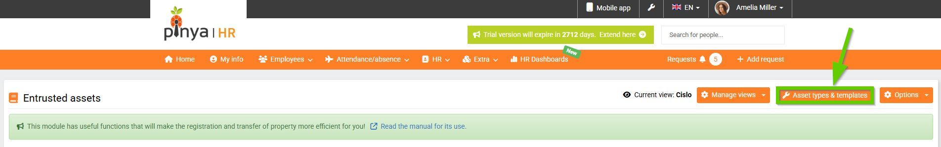 to the navigation menu > HR > Entrusted assets > Asset types and templates . (1)