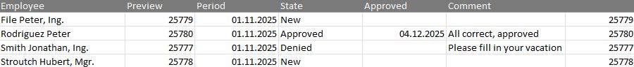 Here you can export the displayed overview of closed attendance for the selected period.