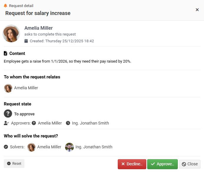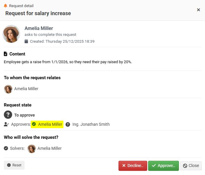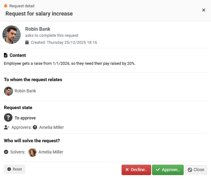 Using the link in the notification, the approver can go to the request details. Here, they have the option to either approve or reject the request.