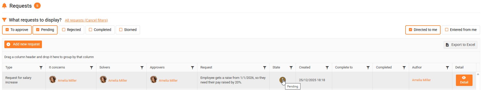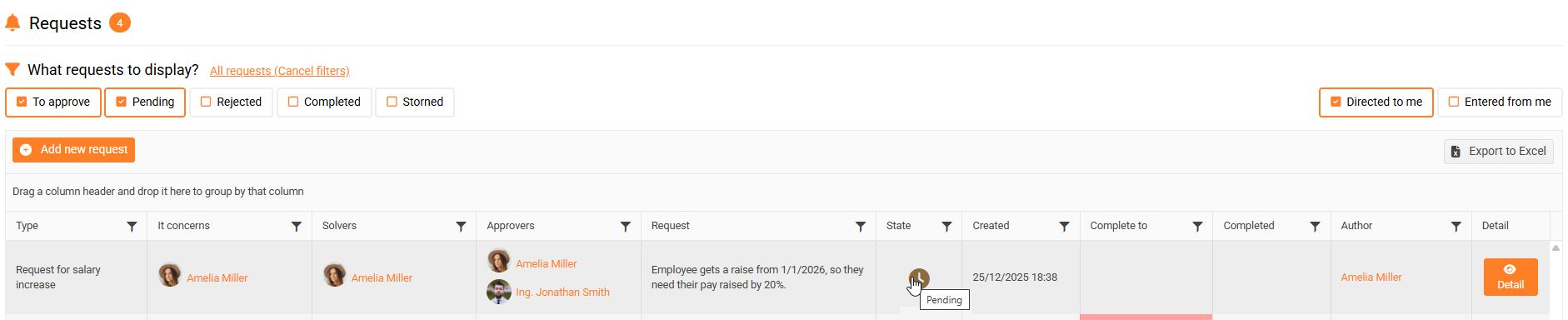 If the template does not define the order in which approvers should approve the request, everyone will receive an email notification about the request waiting for approval at the same time. Approvers therefore approve the request independently of each other. The rest of the process is identical to approval by multiple approvers - in the specified order. When all approvers approve the request, its status will change to Pending.