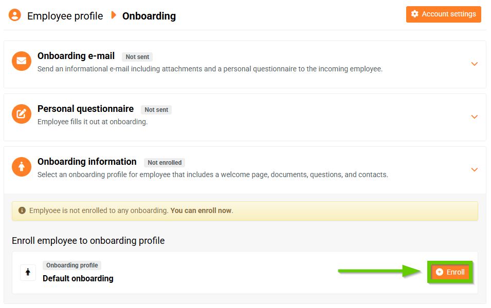 Here you can see all active onboardings. Select the onboarding you want to enroll the employee in and click the Enroll button.