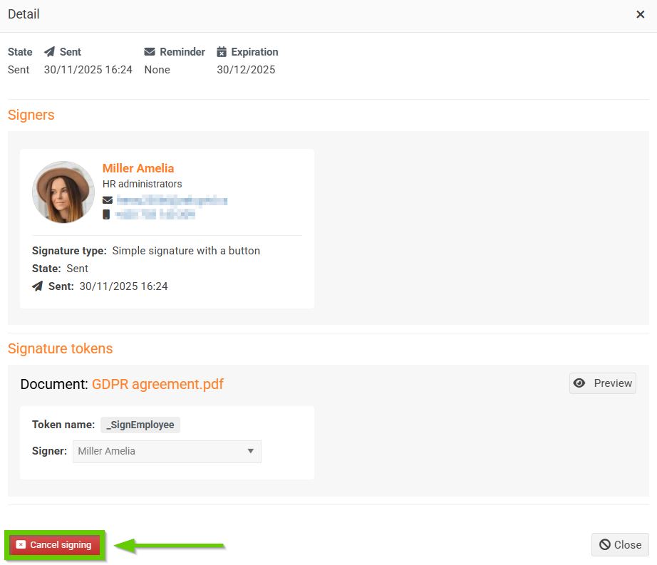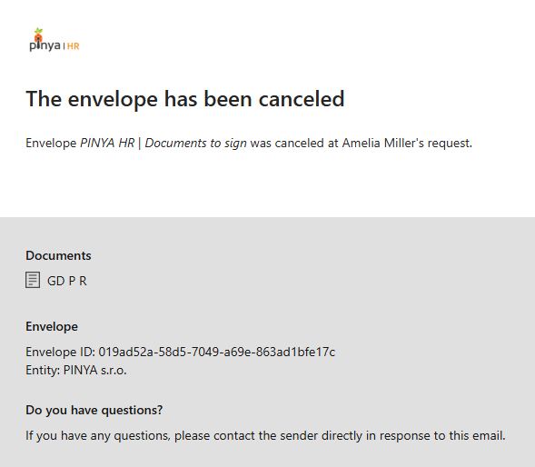 - An email will be sent to signatories notifying them of the cancellation of their signature.