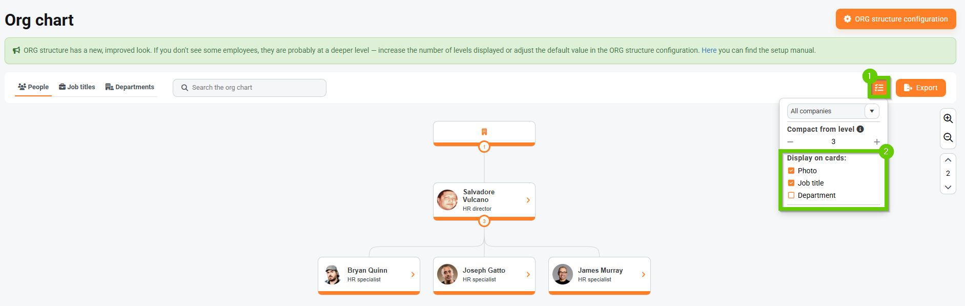 - Use the checkboxes to specify whether a photo, position, or department should be displayed.
