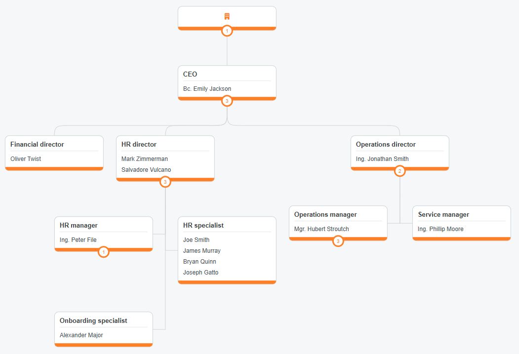 If you have multiple companies and employees who have parallel contracts with these companies, one person can be depicted in several structures at the same time.