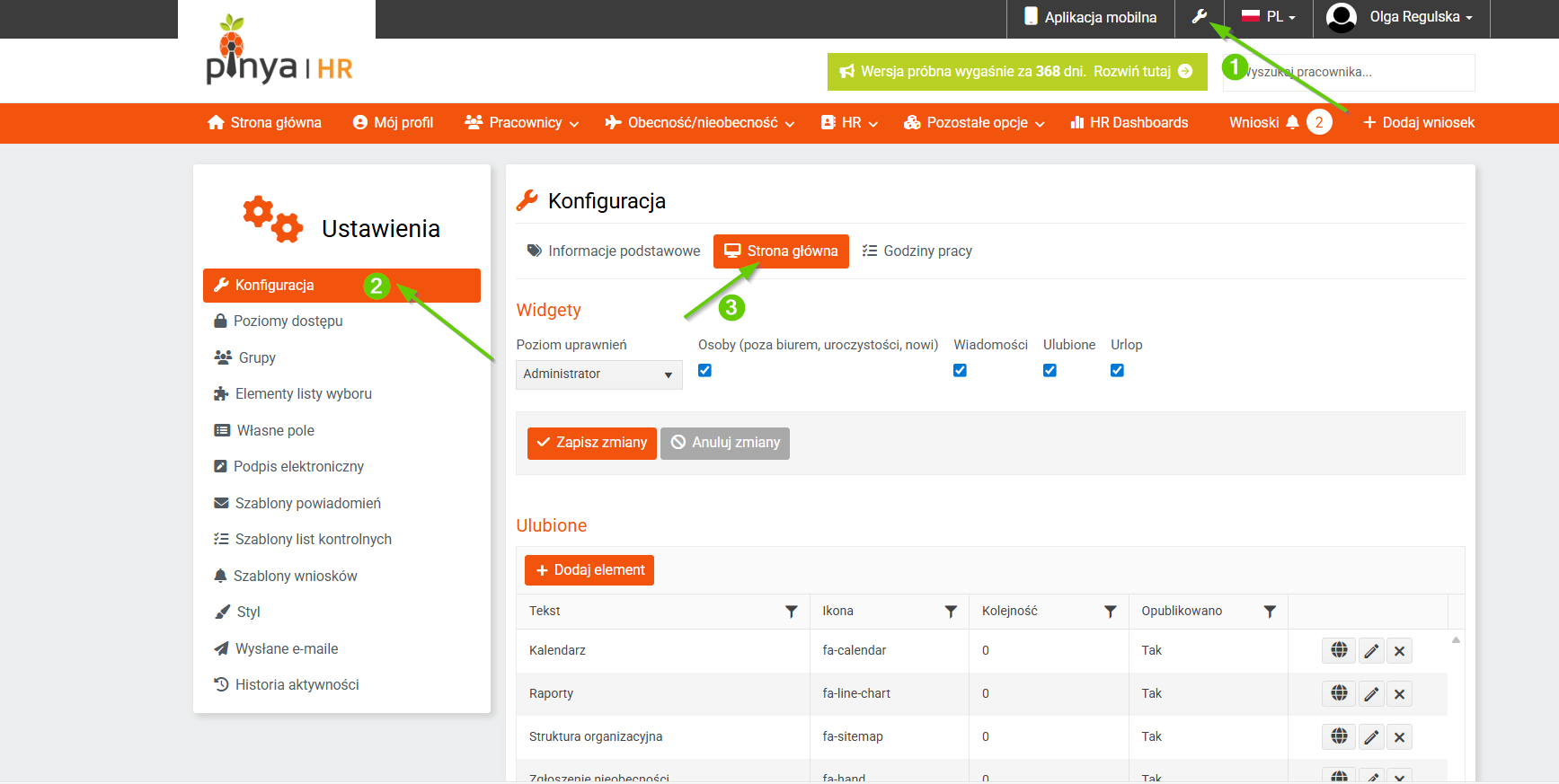 Co widzi zwykły pracownik przy powyższych ustawieniach: