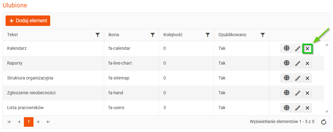 Aby usunąć istniejący link, kliknij ikonę krzyżyka. Pojawi się okno z pytaniem, czy na pewno chcesz usunąć wpis.
