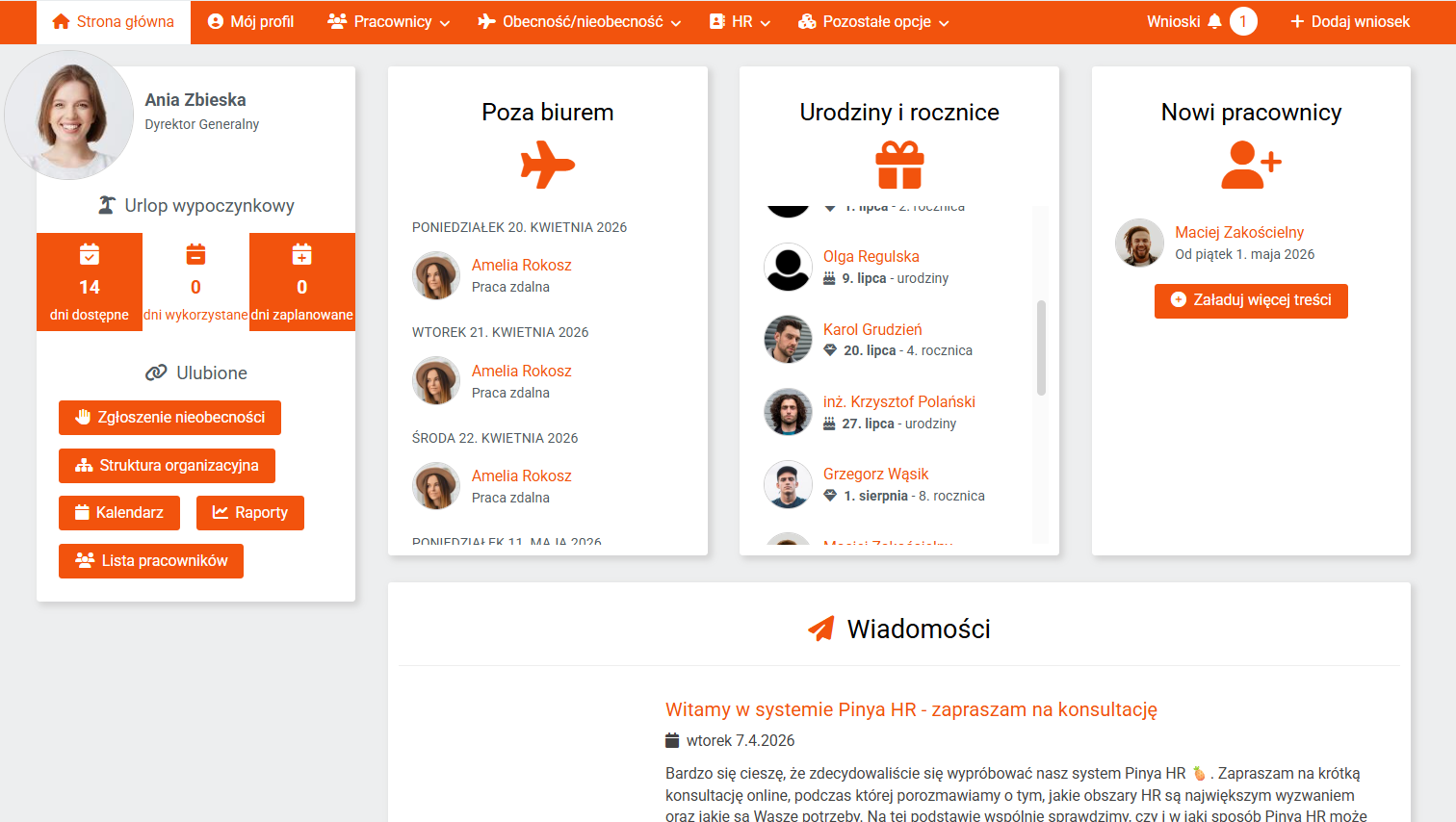 Moduł Wiadomości służy do zamieszczania aktualności i informacji dla pracowników.